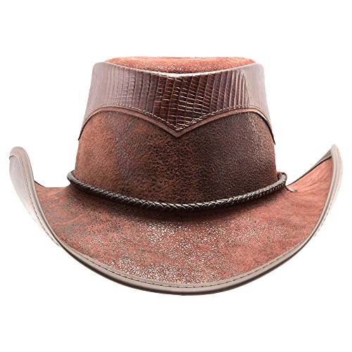 Binding : Apparel Product Description The weathered leather Arroyo Double G hat features a braided band and reptile textured crown. Customize this classic and functional all-weather hat with your choice of exotic trims and hatbands for the ultimate in personalization and style in one of our sturdiest hats. 0