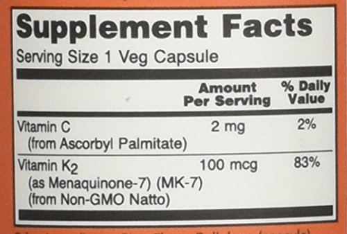 -. Binding : Health and Beauty -. Brand : Now Foods -. Feature : NOW Foods' MK-7 vitamin K2 contains a highly biologically active form of vitamin k2 derived from non-GMO natto / Vitamin K2 and its dependent proteins have been discovered to be of vital importance for bone and vascular health / These vitamin k2-dependent proteins are now known to play pivotal roles in the physiology of bone mineralization -. IsAdultProduct : 0 -. Label : Now Foods -. Manufacturer : Now Foods -. MPN : 0992 -. PackageQuantity : 1 -. PartNumber : 0992 -. ProductGroup : Health and Beauty -. ProductTypeName : HEALTH_PERSONAL_CARE -. Publisher : Now Foods -. Studio : Now Foods -. Title : Now Foods Vitamin K-2 (MK7) Veg Capsules, 100 mcg, 60 Count