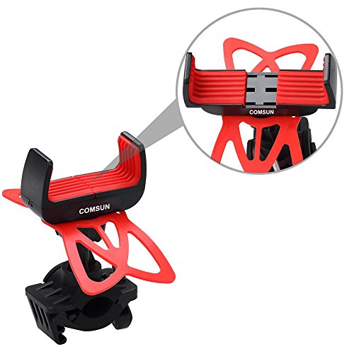 Bike Mount, Comsun Universal Adjustable Bicycle Cell Phone Holder Cradle Stand for Motorcycle Rack Handlebar Smartphone GPS Navigation 360 Degree Rotation With Rubber Strap Plastic Black