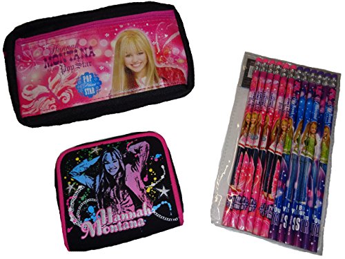 Product DescriptionGirls Hannah Montana 4 piece gift set: 1 Small handbag, 1 wallet, 1 accessories case and 1 pack of 12 decorated wood pencils.0