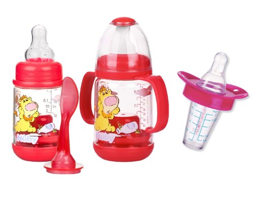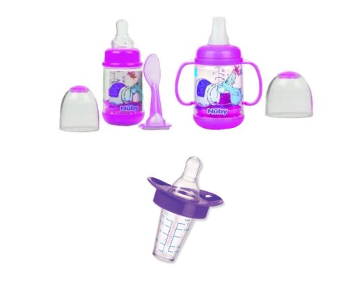 -. Feature : Infant Feeder includes 1-2 ounce feeder, 1-4 ounce feeder 1- medium flow silicone feeding nipple, soft training spout, 2-leak proof covers, no mess spoon, detachable handles / Anti-colic air system helps prevent ingestion of air by baby / Teething nubs massage and stimulate gums / Bottle is made from BPA Free clear break resistant plastic / Comes with Medicator - Safe, easy, and accurate way to dispense liquid medicine