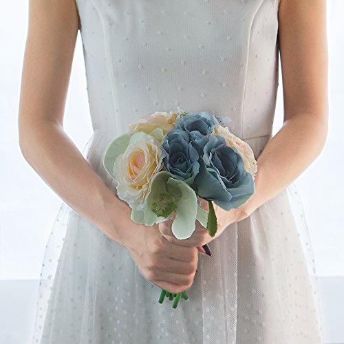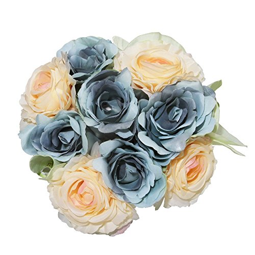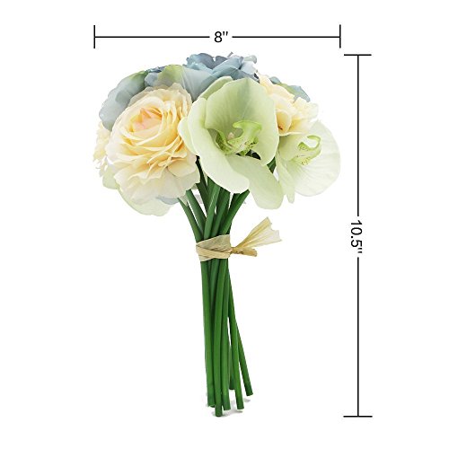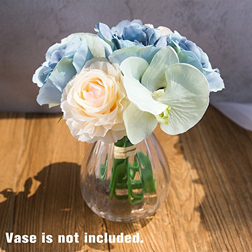 Rose Phalaenopsis Silk Artificial Flower Bouquet for Home Wedding Office Party Decoration-12Pack (Blue)