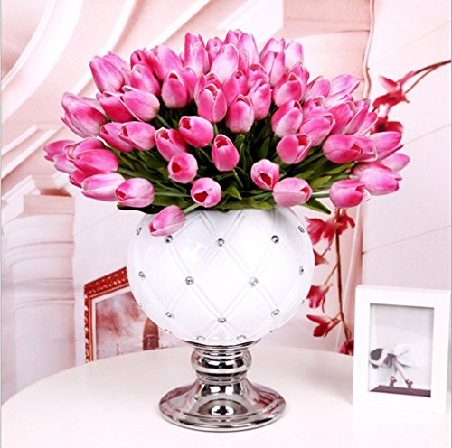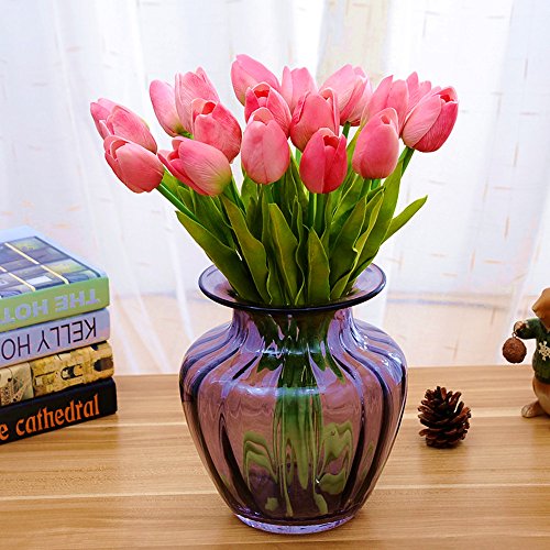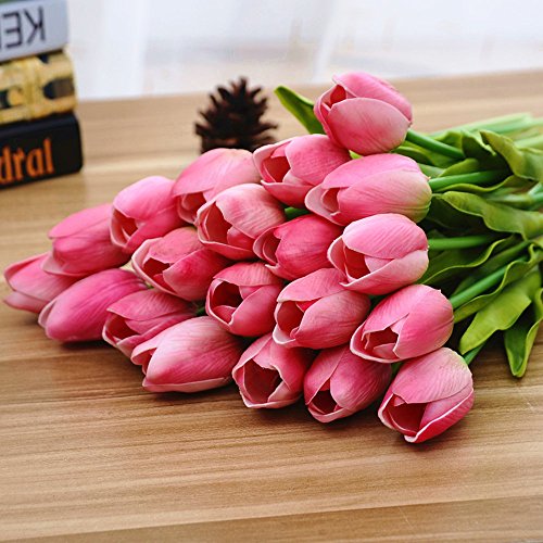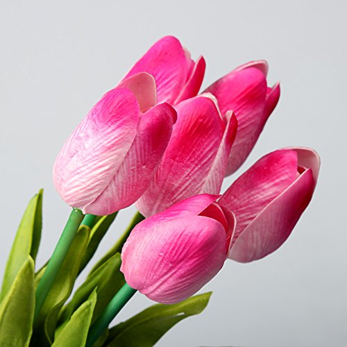 10PCS Wedding Decor PU Tulip Artificial Wedding Home Design Bouquet Flowers (darkpink)