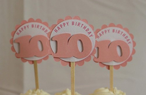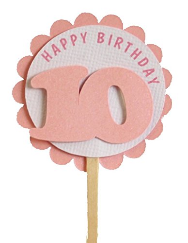 All About Details Shimmer Pink 10th Birthday Cupcake Toppers, Set of 12