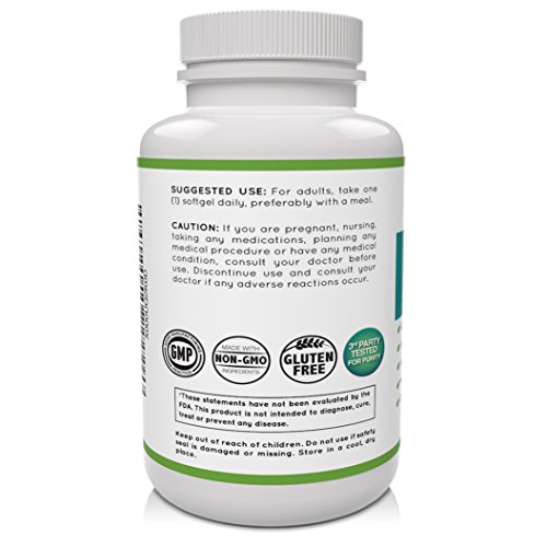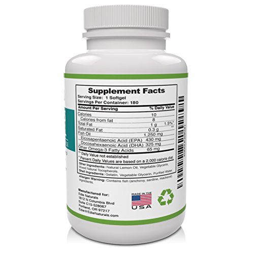 -. Feature : KEEP YOURSELF AND LOVED ONES HEALTHY Extensive research indicates that omega-3 fats reduce inflammation; helping to prevent inflammatory diseases like heart disease and are essential to the brain; impacting behavior and cognitive function and fulfil DHA supplement requirements during pregnancy / OUR FISH OIL ONE A DAY is the BEST FISH OIL Omega 3 essential fatty acids are vital nutrients and essential oils that your body needs for good health but cannot produce on its own; Omega 3s may also improve artery health; cholesterol triglyceride levels; joint bone mental health skin hair eye health particularly dry eye bowel and lungs; enhances mood; weight loss and general wellbeing / ONE of our best EPA DHA Omega 3 supplementation soft gels EXCEEDS the recommended MINIMUM DAILY SERVING of EPA and DHA; with other fish oils you may have to take 2 or 3 a day to equal our Omega 3 levels; our omega 3 fish oil lemon flavor is suitable for women; men; seniors and children / BEST FISH OIL SUPPLEMENT Our pure omega oil soft gels with 430mg EPA supplement and 325mg DHA supplement are from natural fish oil sourced and manufactured in the USA and is molecularly distilled to ensure purity; Mercury free fish oil Non GMO No Artificial Color Flavor or Sweetener No Preservatives No Sugar No Starch No Milk No Lactose No Gluten No Wheat No Yeast No Sodium Kosher certified (KOF-K) and Halal certified / PEACE OF MIND GUARANTEE Order our best OMEGA 3 fish oil supplements TODAY and if you are not satisfied at any time you are protected by our 100% money back guarantee; we want all our customers to have a 5* experience with us. We have the best fish oil supplement reviews