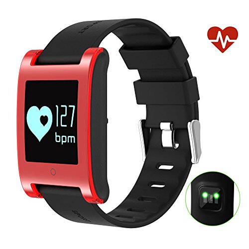 -. Feature : HIGH QUALITY - 0.95" OLED touch screen can turn the wrist to bright and dark the screen; Built in 120mAH Large Battery; dustproof; IP67 Waterproof for Sweating, Hand-Wash, Light Water Contact; Wireless distance: 5m-10m / COMPATIBILITY - Easy to contact with Bluetooth 4.0; App support system: iOS 8.0 or above, Android 4.4 or above. For Android, all functions can be used, but for iPhone, it only supports partial functions including pedometer, calendar, call sync, clock, music player, handsfree call. / HIGHLIGHT - AS a Healthy Tracker, you can check your physical index, such as steps, distance, calories burned, sleep, heart rate, blood pressure, speed, activity time all day, and multi training modes will help you get a better understanding of your fitness level. / MULTIFUNCTION - Bluetooth Synchronization, Professional Heart Rate Detection, Intelligent Anti-lost, Calls & Messages Reminder, Remote Camera, Sport Monitor, Sedentary Reminder, etc / PRETTY PRESENT - A sweetheart gift for kids and adults who loves sports. It is especially suitable for the elder people. It also can be a great gift for Christmas/Birthday/New Year