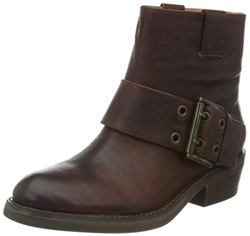 - Feature : Leather boot featuring adjustable buckle with metallic grommets and dual pull-on straps on shank