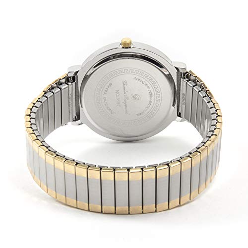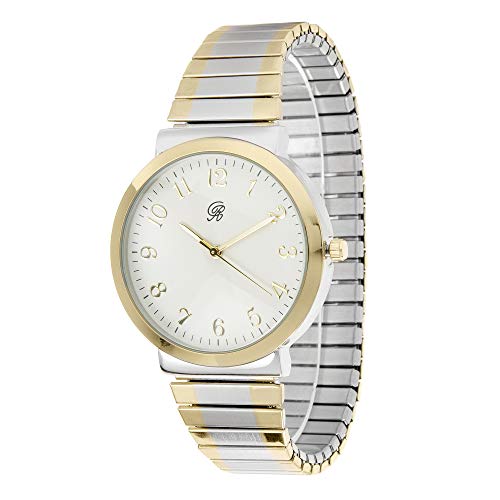 Brand, Seller, or Collection Name:Charles Raymond Part Number:8197 Two Tone Item Shape:Round Dial window material type:Glass Display Type:Analog Clasp:stretch band Case material:Gold tone Case diameter:1.50 inches Case Thickness:0.20 inches Band Material:Silver Tone Band length:Men's Standard Band width:0.70 inches Band Color:Silver Dial color:White Bezel material:Gold tone Bezel function:24 hour time display Special features:Second hand Movement:japan parts assembled in singapore