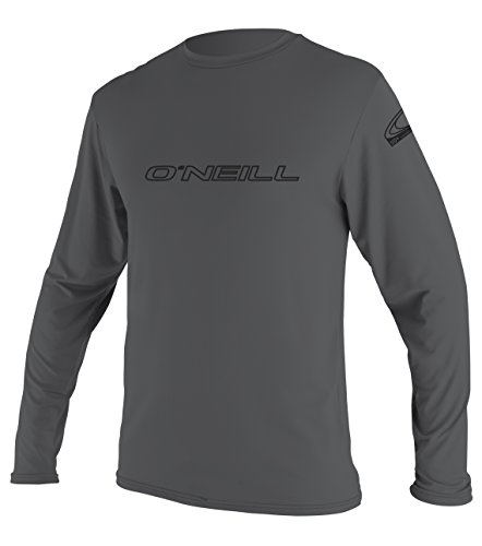 O'Neill Wetsuits UV Sun Protection Mens Basic Skins Long Sleeve Tee Sun Shirt Rash Guard, Smoke, Medium