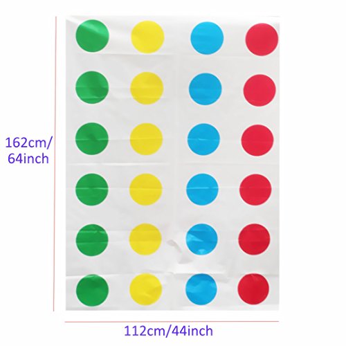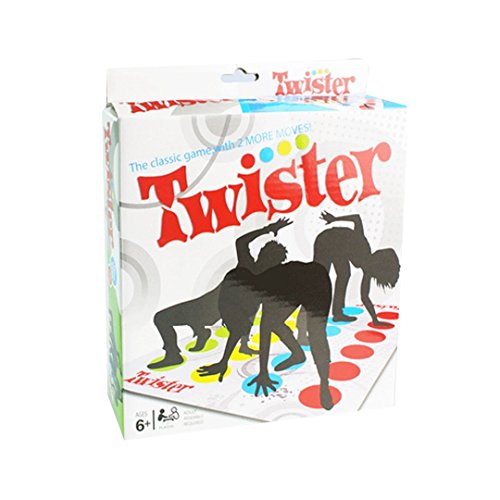 Description Twister board game challenges you to put your hands and feet at different places on the mat without falling over! Be the last player standing to win. A fun and classic game of fun and balance. Made of high-quality plastic; it is non-toxic, environmentally friendly and safe to play. Features - Includes 1 mat, 1 fully assembled spinner and 1 instruction. - The size of the mat (board) is 64 x 44 inch; the size of the spinner is 7.5 x 7.5 inch - For 2 to 4 players. - Ages 6 and up. - Skills: self-balance, coordination, flexibility and color recognition. - Create fun and bring families and friends (and celebrities) closer together. Package list 1x Twister floor mat 1x Spinner 1x Manual