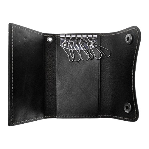 -. Binding : Apparel -. Brand : ZLYC -. ClothingSize : One Size -. Department : womens -. Feature : Material: high quality handmade genuine leather with alloy and brass hardware / Color: dark brown and black / Size: 2.8 x 4.3 inches / 7 x 11 cm (folded), 7.5 x 4.3 inches / 19 x 11 cm(unfolded) / This key wallet securely holds six keys in a high quality brass key-plate. And it sports a pocket that easily holds credit cards / 2 front buttons for safely contents security -. NumberOfItems : 1 -. PackageQuantity : 1 -. ProductGroup : Apparel -. ProductTypeName : ACCESSORY -. Size : One Size -. Title : ZLYC Genuine Leather Keychain Key Wallet 6 Hook Button Closure Key Holder Case with Card Holder
