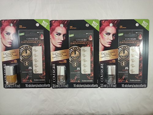 -. Title : 3 Color Collection Covergirl The Hunger Games Catching Fire Capitol Collection Nail Art Stickers - 105 Tawny Flame; black heat, seared bronze, sulfur blaze nail polish colors with fire decal stickers