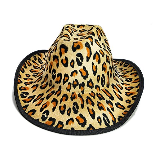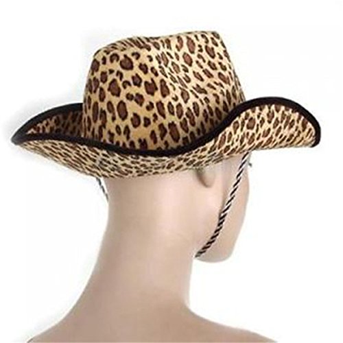 (LUCKYLIANJI)/Accessories/Hats/DIRECT FROM USA/LUCKYLIANJI Men Retro Wool Leopard Cowboy Hat Western Cowgirl Wide Brim Cap (Size:58cm,Tie Rope)