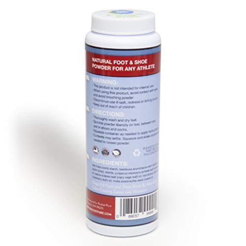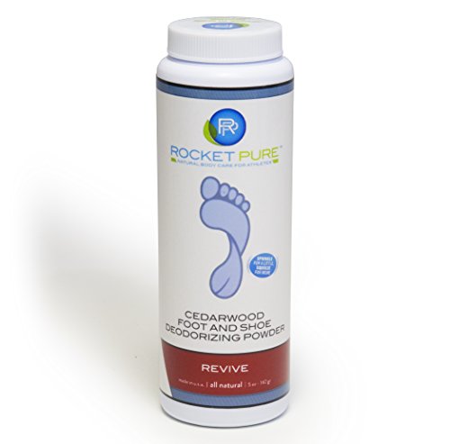 -. Feature : Fights foot and shoe odor, freshens feet, sport shoes and sneakers. Deodorant powder can go directly on feet, or in shoes and socks. / Ideal for any athlete, runners, including barefoot and minimalist, cyclists, hikers and skiers. Or anyone with stinky feet and shoes! / Made in the U.S. of natural ingredients, no harsh or toxic chemicals, paraben free. / Rocket Pure Guarantee: 100% Satisfaction for the Lifetime of the Product, or 100% Refund or Replacement. We are a small family company with customer service as our top priority. / Made of corn starch, bamboo stem powder and essential oils of cedarwood, clary sage and rosemary. Hundreds of uses in each bottle: 5 oz / 142 gr