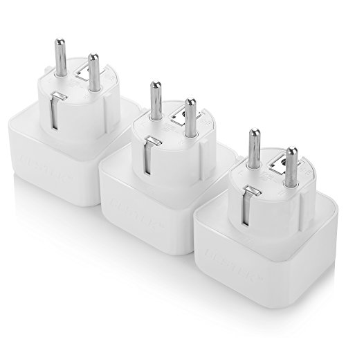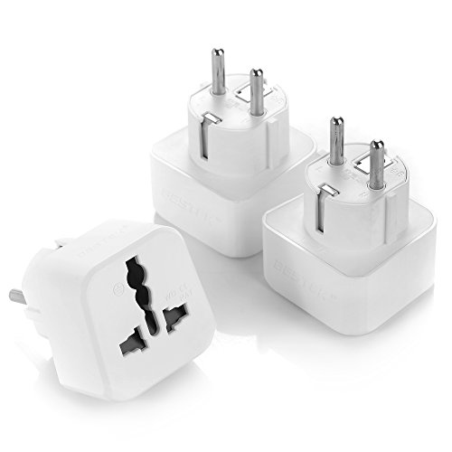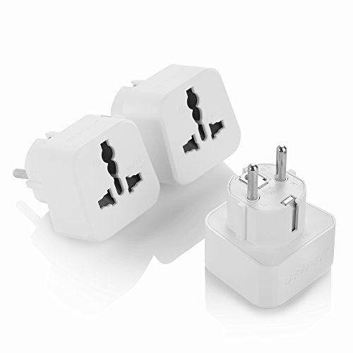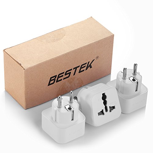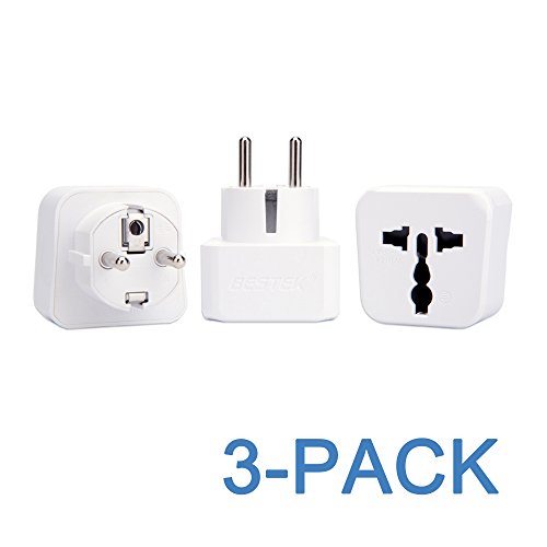 European AC Adapter Kit, BESTEK Grounded Travel Power Wall Plug US to Germany, France, Russia, Italy, etc, Universal US UK EU AU ASIA Converter - Type E & Type F (Schuko) - 3 PACK