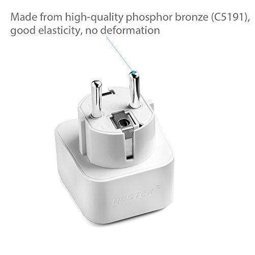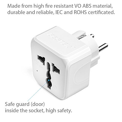 - CE & ROHS Certified: With V-0 rating ABS shell, C5191 copper metal pin and built-in safety shutter, this schuko adapter is cetified and flame retardant, good electric conduction but low heat, which means safety for you and your devices