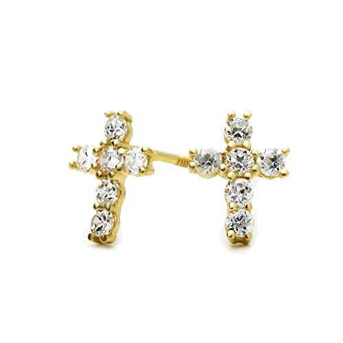 -. Title : 14K Yellow Gold Cross Screwback Stud Earrings
