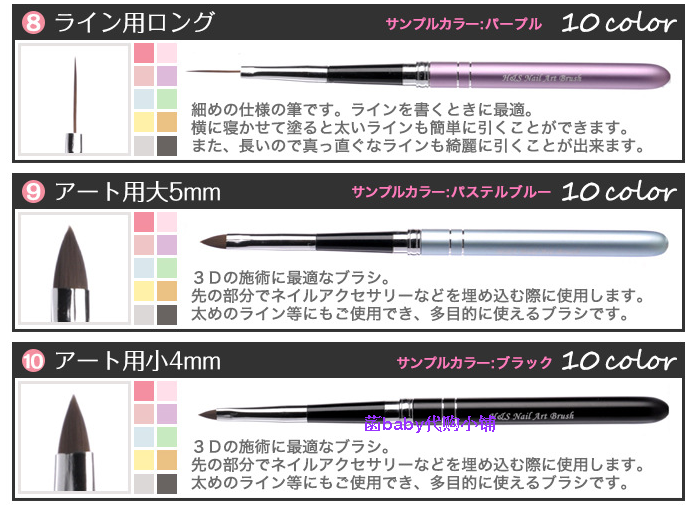 用途:可以用来做光疗指甲笔刷,还可以用来刷亮粉亮片