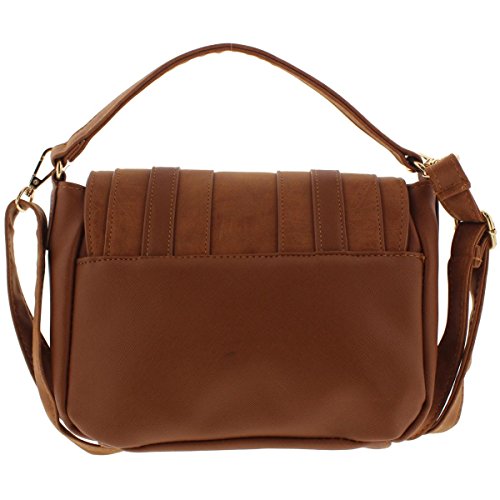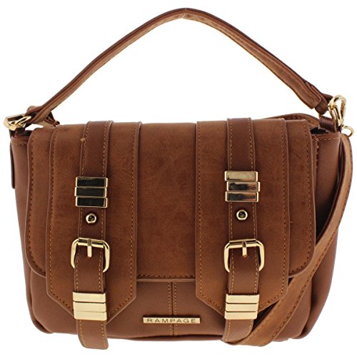Rampage Womens Contrast Trim Satchel Crossbody Handbag Brown Small