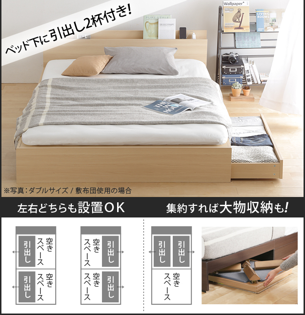 ●ベッドフレームのみ 省スペース スリムヘッドボード 2口 コンセントカバー