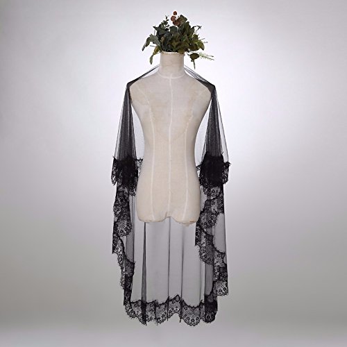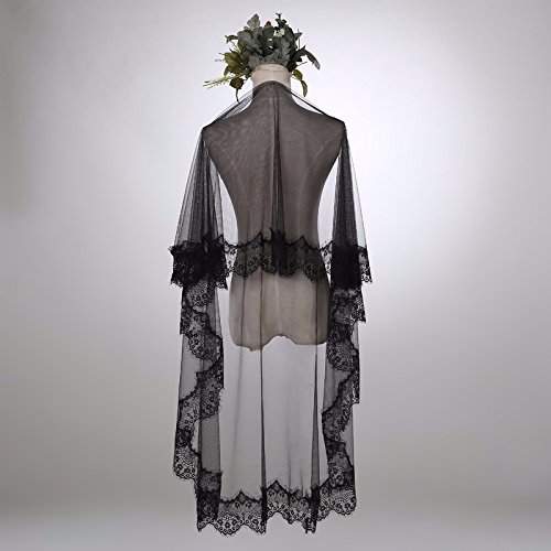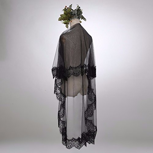 (Yikaya)/Accessories/Scarves/DIRECT FROM USA/Yikaya Women's 1.5 M Long Black Wedding Veil Bridal Veil with Lace Edge