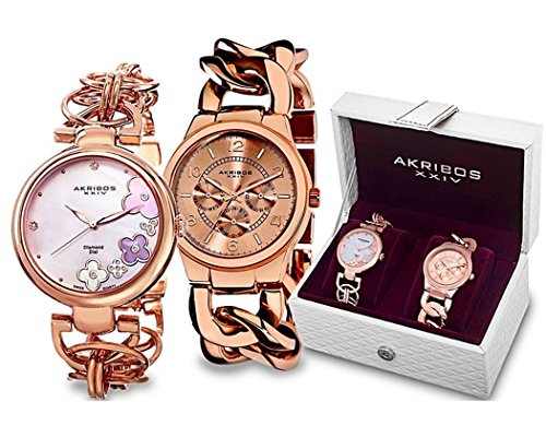 -. Title : Akribos XXIV Women's Quartz Diamond/Multifunction Chain Link Bracelet Watch Set - Rose-Tone