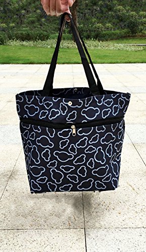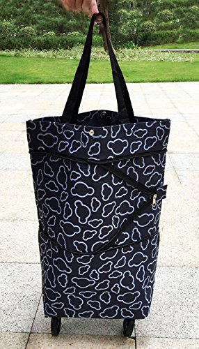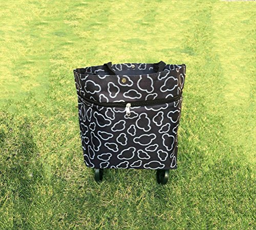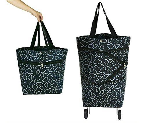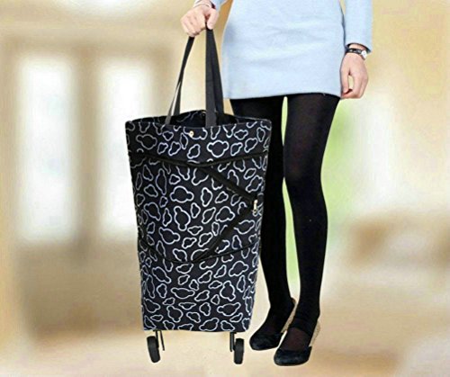 Cocobuy Collapsible Trolley Bags Folding Shopping Bag with Wheels Shopping Trolley Foldable Shopping Cart Grocery Bags Traveling Bag 7 Colors (Black)