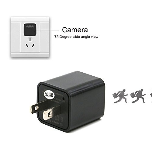 Charger Camera Adapter EOVAS 1080P HD USB Wall Charger Camera Mini Nanny Camera with 32G Internal Memory for Home Security Camera - Update Version