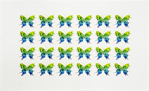 - This large cotton tea towel has a repeat print of watercolour butterflies in shades of turquoise and green