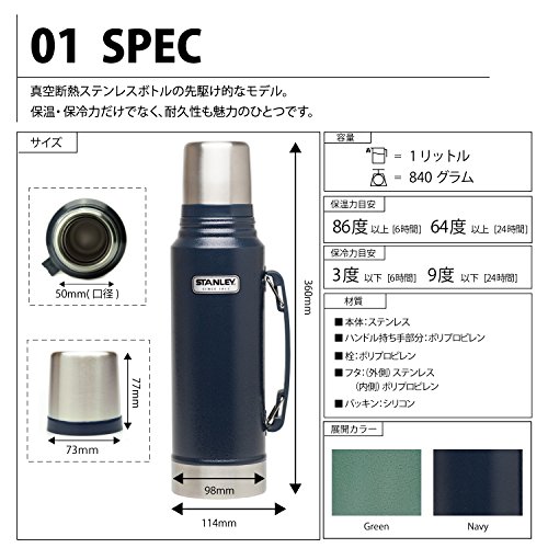 원본상품명: STANLEY(スタンレ?) クラシック?空ボトル 1L ネイビ? 水筒 01254-050 (日本正規品)