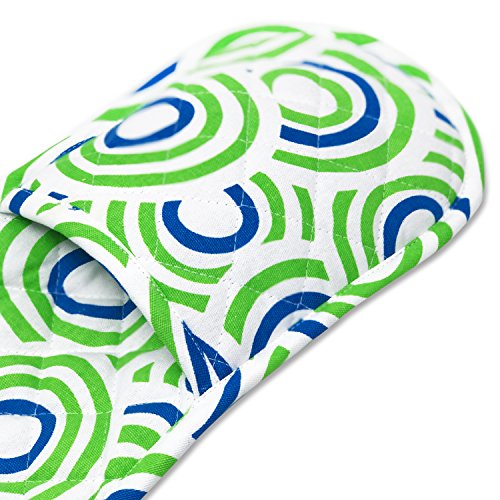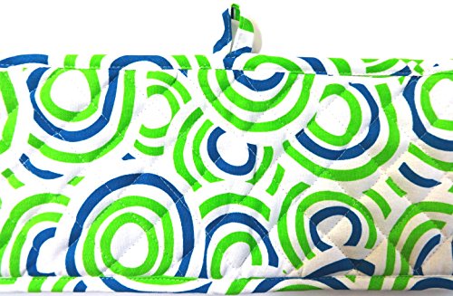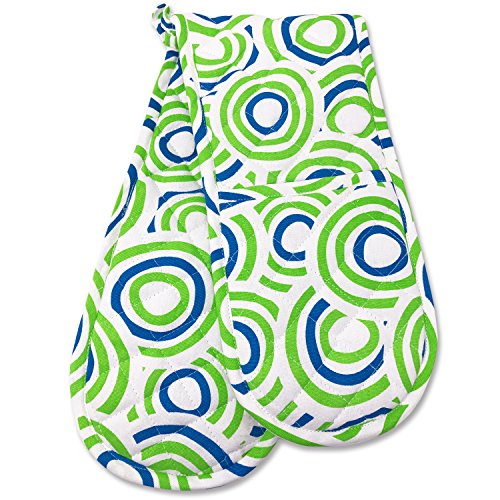 Double Oven Gloves, Smart Home, Concentric Green Circles, 1 Piece, Long Mitts, Heat Resistant, 100% Cotton, Extra Thick, Quilted