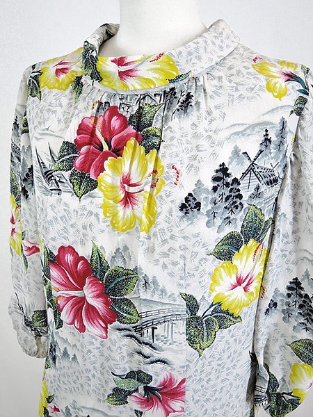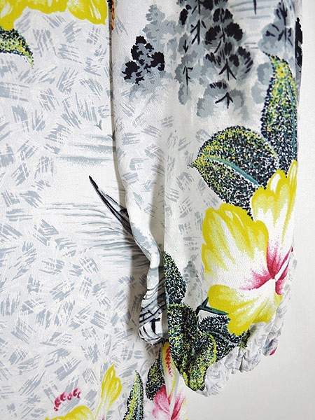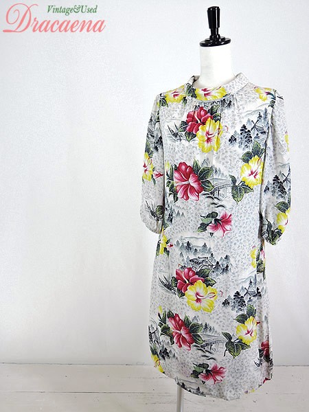 Ladies ブランド カラー白・ピンク・黄 メール便不可 コンディション★★★ 素材レーヨンだと思われます 表記サイズ記載なし スタッフコメント袖口のゴムにゆるみがあります。 実寸サイズ 着丈 95 cm 身幅 45 cm 肩幅 38 cm 袖丈 42 cm ※ウエスト・ヒップ以外は平置き採寸【code】#c
