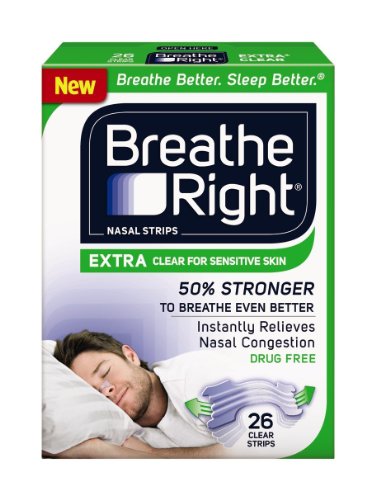 -. Binding : Health and Beauty -. Brand : Breathe Right -. EAN : 0700220803039 -. Feature : You will receive 4 of the 26 count boxes. (104 strips!) / For sensitive skin. / Clear, 50% Stronger / Opens your nose to reduce snoring and nasal congestion / Drug free; Safe to use with any medicine -. Label : Breathe Right -. Manufacturer : Breathe Right -. PackageQuantity : 4 -. ProductGroup : Health and Beauty -. ProductTypeName : HEALTH_PERSONAL_CARE -. Publisher : Breathe Right -. Size : Extra Clear -. Studio : Breathe Right -. Title : Breathe Right Nasal Strips EXTRA CLEAR For SENSITIVE SKIN 104 Strips (4 packs of 26) -. UPC : 700220803039