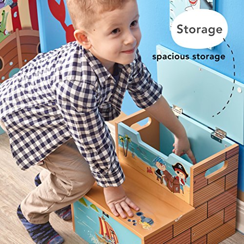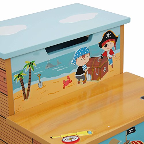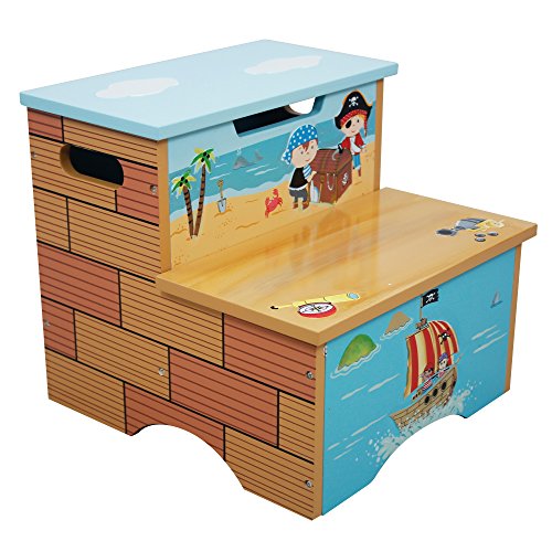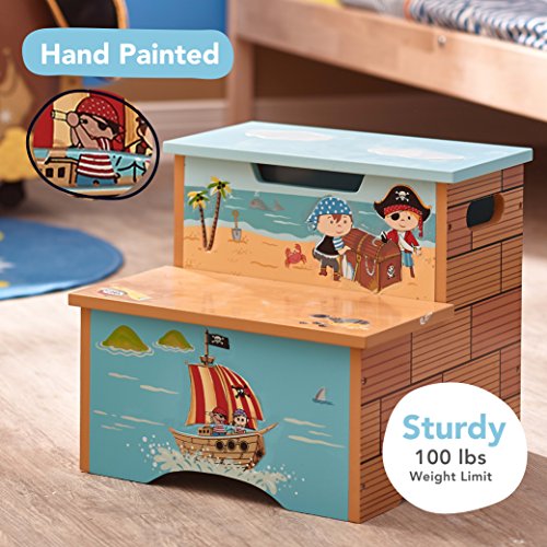 Fantasy Fields - Pirate Island Thematic Kids Wooden Step Stool with Storage | Imagination Inspiring Hand Crafted & Hand Painted Details | Non-Toxic, Lead Free Water-based Paint