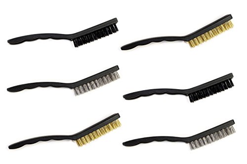 Set of 6 Mini Wire Brushes, Nylon Brush, Steel Brush and Brass Bristles Brush
