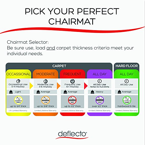 -. Binding : Office Product -. Brand : Deflect-O -. Color : Clear -. Department : Office -. EAN : 0079916023229 -. Feature : Transparent chair mat offers exceptional clarity and is extremely durable and resilient to protect floors from wear and tear / Ideal for big and tall users and heavy executive chairs / Environmentally friendly mat is designed for hard surfaces -. Label : S.P. Richards Company -. Manufacturer : S.P. Richards Company -. Model : DEFCM21442FPC -. MPN : DEFCM21442FPC CM21442FPC -. NumberOfItems : 1 -. PackageQuantity : 1 -. PartNumber : DEFCM21442FPC CM21442FPC -. ProductGroup : Furniture -. ProductTypeName : HOME_FURNITURE_AND_DECOR -. Publisher : S.P. Richards Company -. Studio : S.P. Richards Company -. Title : Deflect-o Rectangle Chair Mat, Straight Edge, 46 by 60-Inch, Clear -. UPC : 079916023229