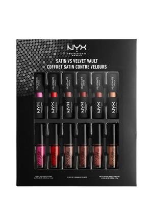 -. Brand : NYX Professional Makeup -. Feature : Filled with lip colors in both matte and satin finishes, this special-edition set includes super-saturated shades for a picture-perfect pout. / Choose from six decadent Velvet Matte Lipsticks and six silky Slip Tease Lip Oils. / Set include : Mini Velvet Matte Lipstick 6 × 2.5 g. Mini Slip Tease Lip Oils 6 × 1.6 ml. / Caution : In terms of item color, it may be slightly different from each monitor display and specification. -. Label : NYX Professional Makeup -. Manufacturer : NYX Professional Makeup -. ProductGroup : Single Detail Page Misc -. ProductTypeName : MISC_OTHER -. Publisher : NYX Professional Makeup -. Studio : NYX Professional Makeup -. Title : NYX Professional Makeup Satin Vs. Velvet Lip Vault # MIDVAULT02
