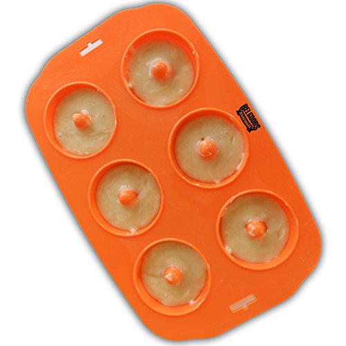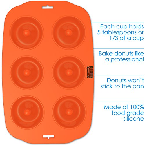 -. Brand : Belgoods Bakeware -. Color : Orange -. EAN : 0820103299541 -. Feature : BAKE LIKE A PROFESSIONAL - Heat-resistant up to 445°F; Holds 5 tablespoons or 1/3 of a cup; Measures 12.7 x 8.2 x 1 inches; Donut diameter is 2.75 inches; Usable in any oven, microwave oven, dishwasher or freezer. / NONSTICK SILICONE - The donuts won't stick to the pan and will pop right out while retaining their beautiful shape; Naturally nonstick silicone; No chemical coating containing PFOA like most metal bakeware. / 100% PURE FOOD GRADE SILICONE - FDA & LFGB Certified; 100% BPA-free; No plastic fillers like cheaper brands often use fillers can compromise the quality and durability of silicone; Pure silicone will retain its color (See image gallery). / VERY EASY TO CLEAN - Silicone bakeware is much easier to clean than traditional metal or aluminum bakeware. The nonstick qualities of silicone will make cleanup a breeze, no more scrubbing for hours. / BUY IN CONFIDENCE - You're fully covered by our 30 DAY MONEY BACK GUARANTEE and you will also receive our FREE baking tips and recipes EBOOK! -. Label : Belgoods Bakeware -. Manufacturer : Belgoods Bakeware -. Model : BB-B01C5LGWJY -. MPN : BB-B01C5LGWJY -. PartNumber : BB-B01C5LGWJY -. ProductGroup : Kitchen -. ProductTypeName : KITCHEN -. Publisher : Belgoods Bakeware -. Studio : Belgoods Bakeware -. Title : Silicone Donut Maker Baking Pan Tray - 6 Holes - Pure Food Grade Premium Non-Stick Silicon - Orange - By Belgoods Bakeware -. UPC : 820103299541