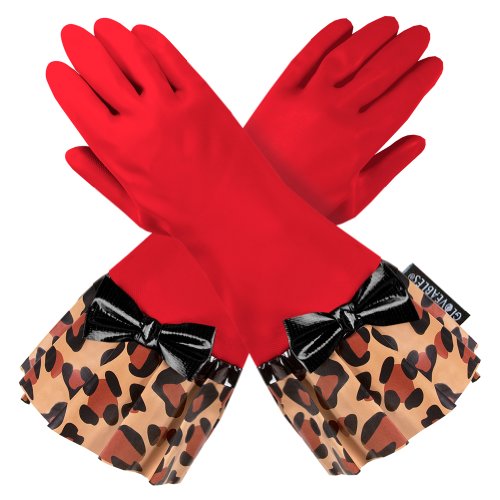 RED GLOVEABLES, LEOPARD TRIM, BLACK BOW