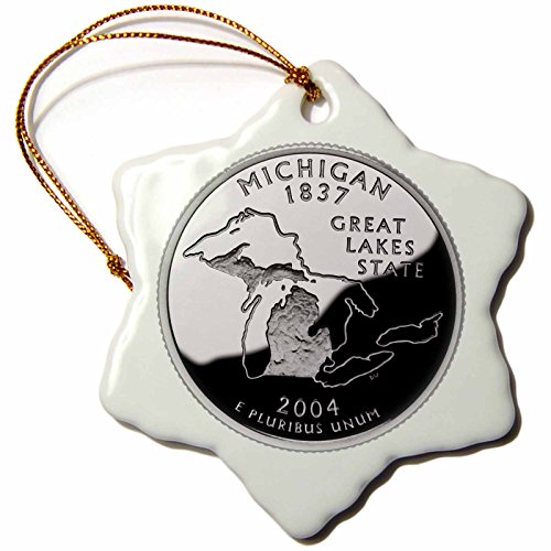 -. Title : 3dRose Sandy Mertens Michigan Travel Designs - State Quarter of Michigan (PD-US) - Ornaments