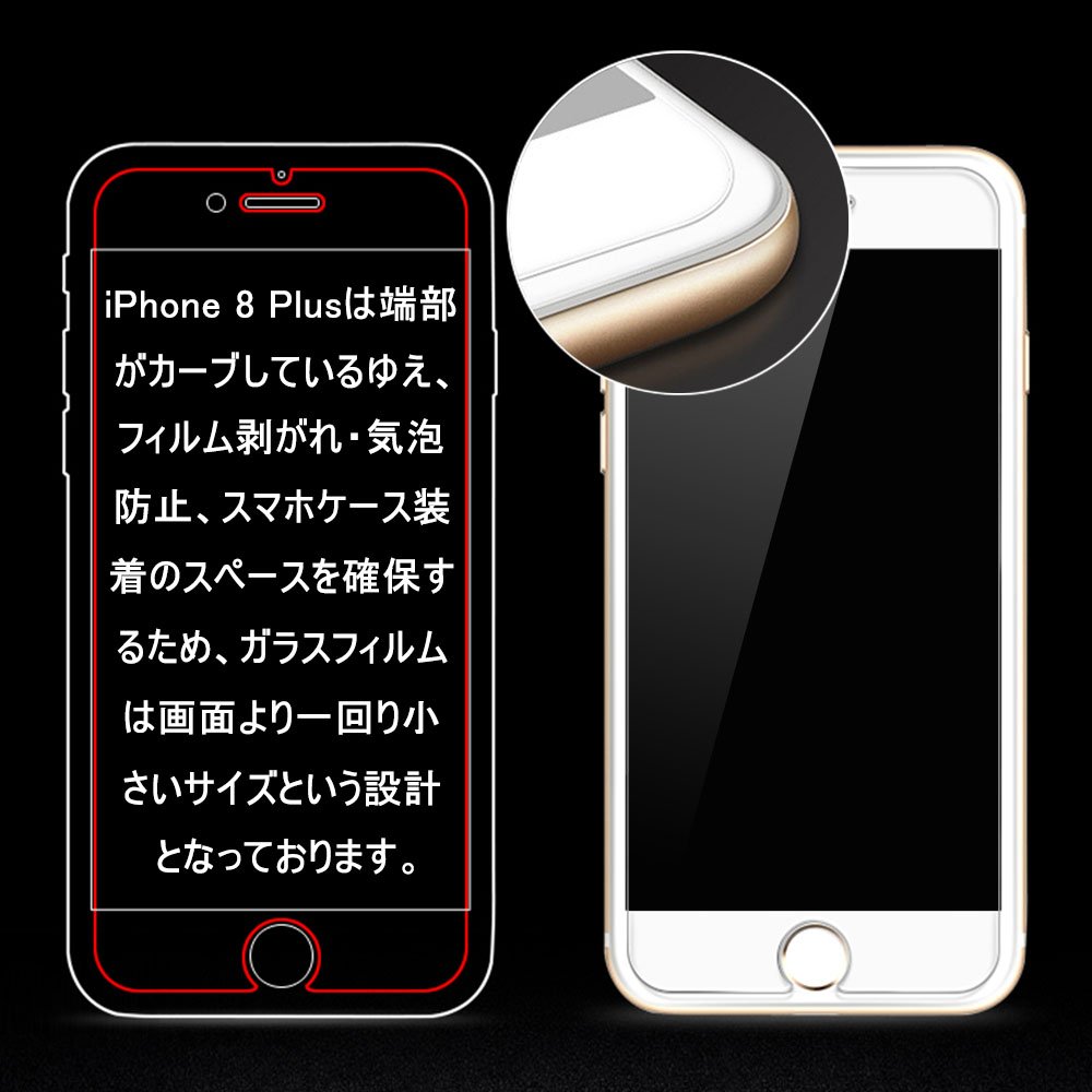 Because the end of the iPhone 8 Plus is curved, the glass film is designed to be one size smaller than the screen in order to secure the space for film peeling / bubble prevention and smart case installation.