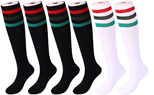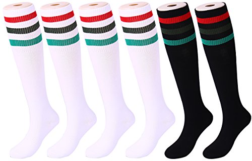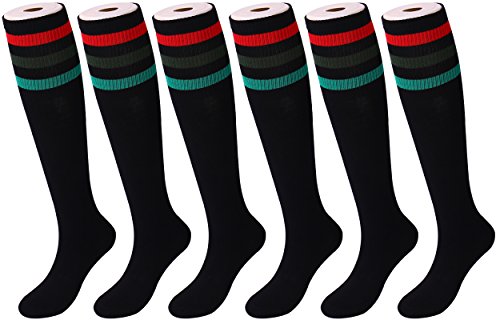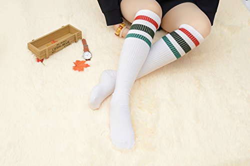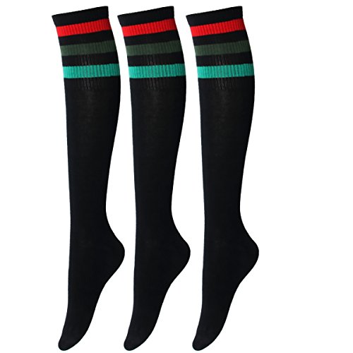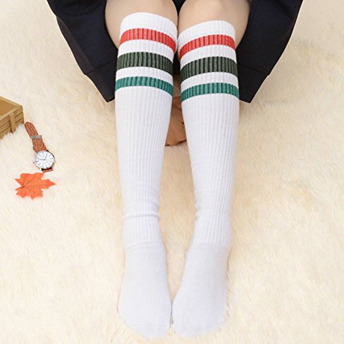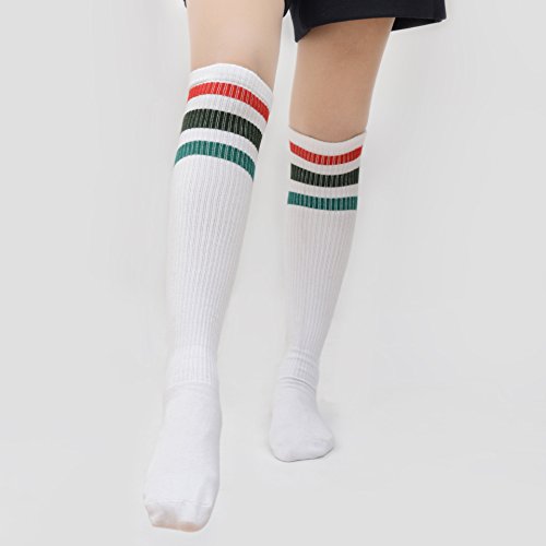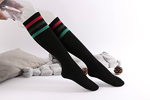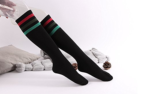 -. Feature : MATERIAL:soft 80% Combed Cotton, 14% Polyamide, 6% Elastane Stretch Knee tube Socks Vintage,Ribbed Upper Sport Stripe Hosiery / DESIGNS:Women's Hot Tube Stockings With Three Stripes at The Top,Matching Your Daily Wearing or Uniform,Designed with A Touch of Stretch , Comfortable Wearing for Running , Tennis , Travel ,Golf and Other Athletic Sports / FEATURE:Non-binding, Comfort Band Construction,Anti-fatigue ,Breathable, Soft Elastic ,Thick and Solid Knee Length Socks ,3 Pairs Premium Combed Cotton Socks Each Package / SEASONS and SIZE:Women's Casual Trouser Socks Fit For SP.R.Ing , Summer , Autumn and Winter ,One Size Fit : XS to M , Shoe Size : US 5~9 / UK 2.5~7 / EU 35~39 / 220mm~260mm / PAY ATTENTION:The Three Stripes Are Red , Green and Atrovirens CoLors.The Atrovirens Color Looks Like Black Color on The Main Pictures Because of Chromatism ,But It Is Atrovirens Color Actually.