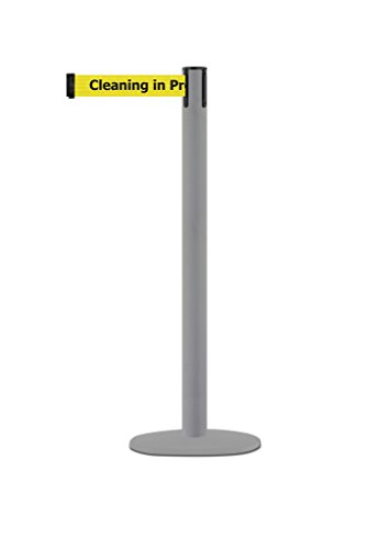Tensabarrier MARINEPOST-36-STD-NO-YCX-C Marine Post, 7'6" length gray Cleaning in Progress belt, 38" Height, 2" wide, 90" Length, Gray
