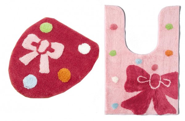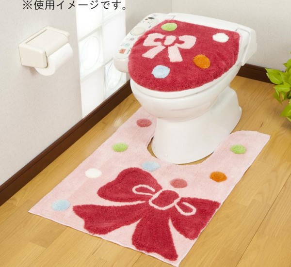 | 大きなリボン柄がキュートなトイレタリーです。マットはサイド横の奥まで長いサイズで、裏面に滑りにくい加工を施しているので、横ズレしにくいです!! |