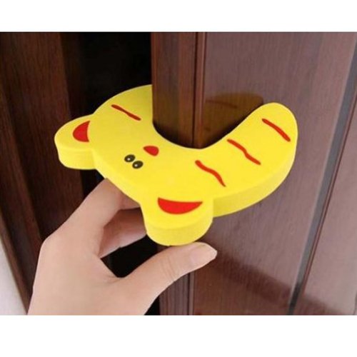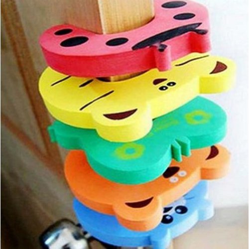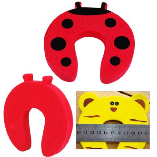 - Feature : 100% Brand New and High Quality. / Cartoon shapes & colors: green butterfly, red Ladybug, blue seal, yellow tiger, and orange bear. / Dimensions: about 10cm x 10cm x 1.3cm. Size may be a little bit different according to different shapes. / Material: Foam / Finger Safe Door Stopper is a great quick fitting child finger protector that stops doors slamming protecting fingers from painful cuts and bruising