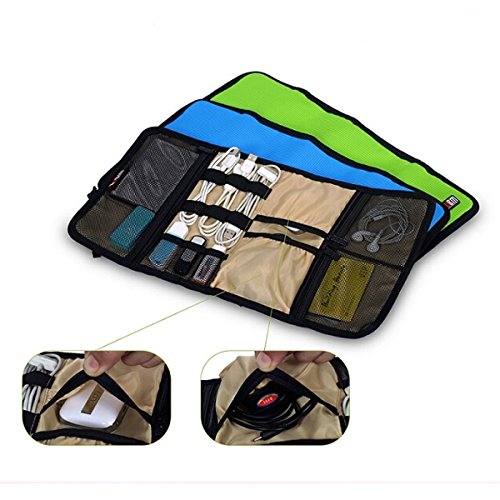 - Feature : This is portable cable organizer bag,made of waterproof nylon. / Divided into 11 sections. Space-saving and multifunctional. / Easy for carrying out and easy to store and organize your stuffs. / Use for : iPhone iPod Pen Cards Cables and other electronics gadget. / Can contain such as mini hard drive, flash drive, cables, memory cards, earphone, visa card, pen, etc.