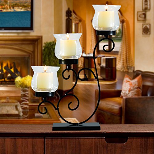 ELEGAN Decorative Metal Table Standing Candle Pillar Holder Antique Vintage Wave Style Classy Home Decor Accents