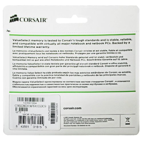 Corsair 8GB (1x8GB) DDR3 1333 MHz (PC3 10666) Laptop Memory 1.5V