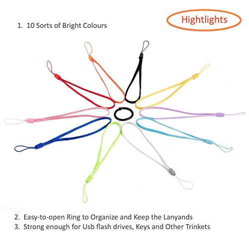 7 Inch Hand Wrist Strap Lanyard for USB Flash Drive, Key, Keychain 10 Pack Color Assorted by Enfain