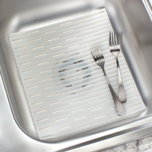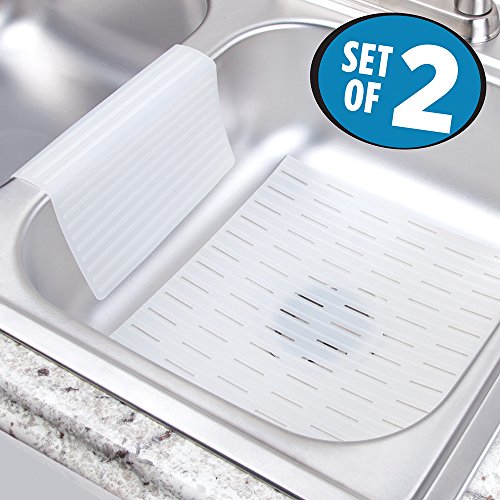 mDesign Silicone Kitchen Sink Mat and Sink Divider Protector - Set of 2, Clear